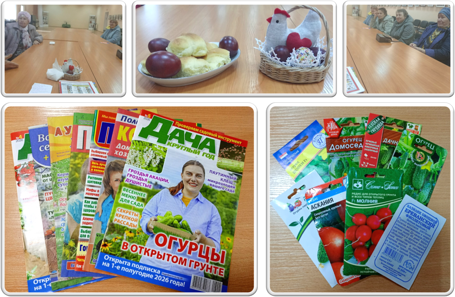 12 апреля в светлый праздник Пасхи состоялось очередное заседание Клуба «Огородник». Собравшиеся поздравили друг друга с праздником, обменялись рецептами окраски яиц. Обсудили какие дни не рекомендуются для посадки и посева овощей и цветов; посев по церковным праздникам и народным приметам; вспомнили секреты успешного урожая; поговорили о весенних поездках в питомники и т.д.