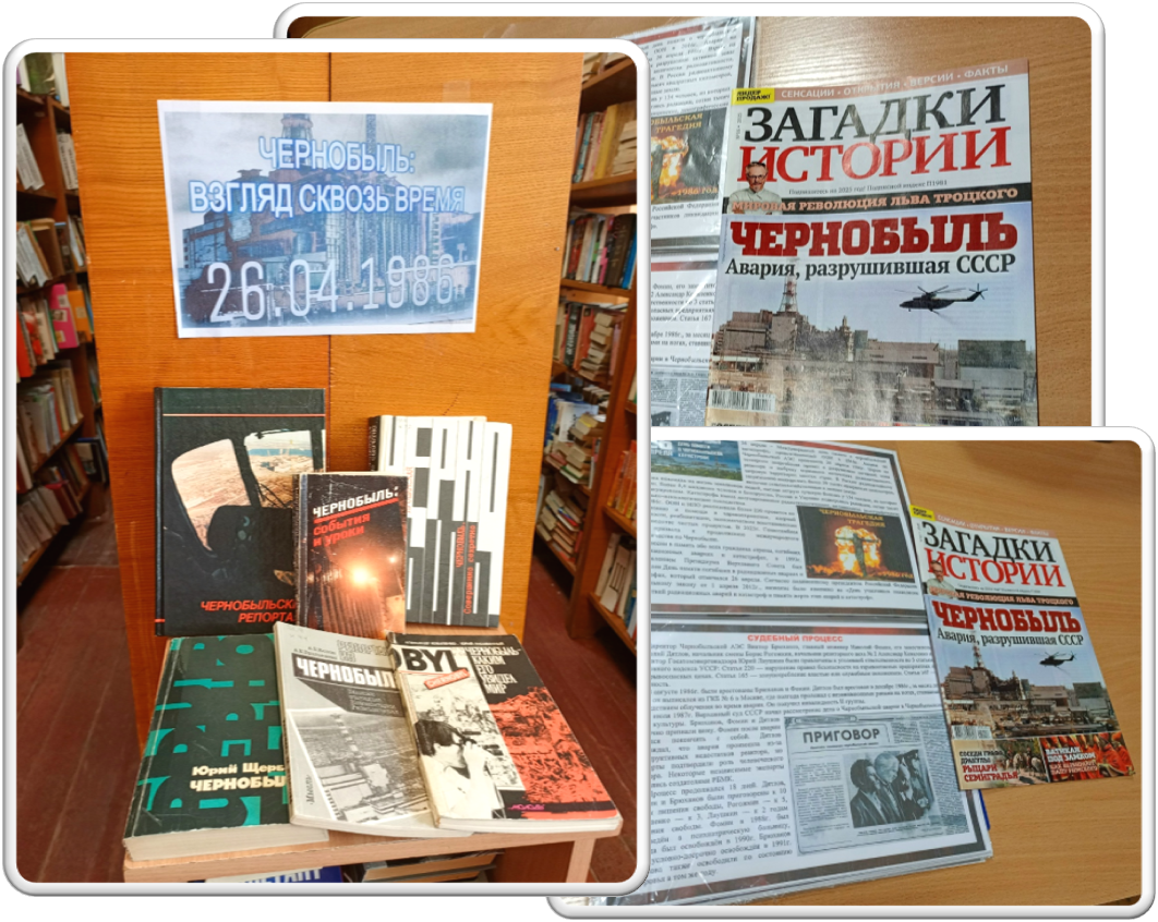 В Опочецкой центральной районной библиотеке состоялись часы памяти "Катастрофа Чернобыля" (фойе) и "Чернобыль: взгляд сквозь время" (абонемент для взрослых). Для посетителей проходили обзоры книг и журналов по теме, была представлена информация о радиоактивной катастрофе, подвиге ликвидаторов аварии, хронике событий того дня и о том, как хрупок окружающий мир.